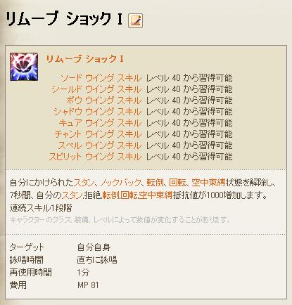 スタン、拒絶、転倒、回転、空中束縛などの状態異常にかかった時、これの解除および7秒間抵抗値を1000増加させるスキル、「リムーブ ショック」がすべてのクラスに追加された。